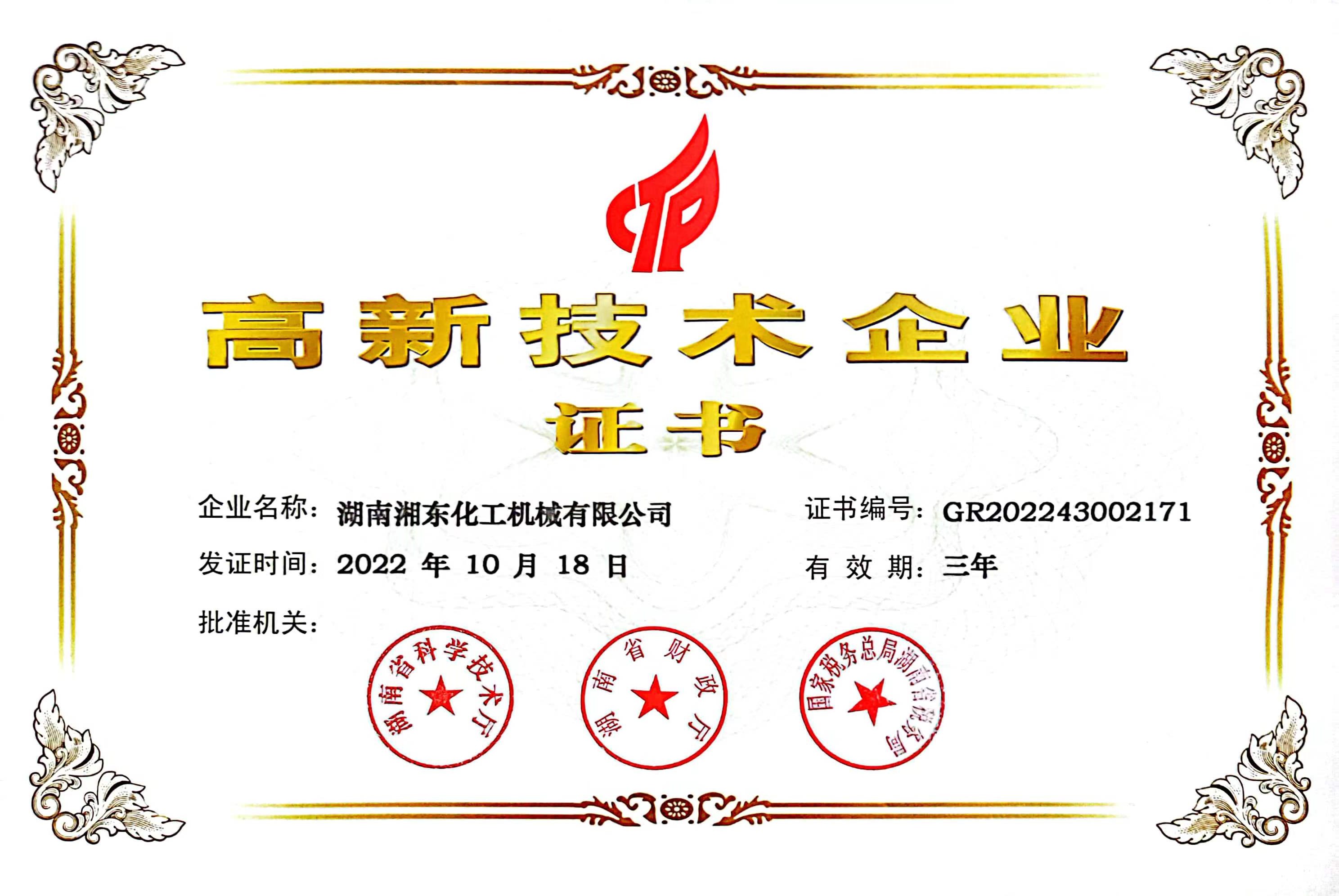湖南省高新技術(shù)企業(yè)證書