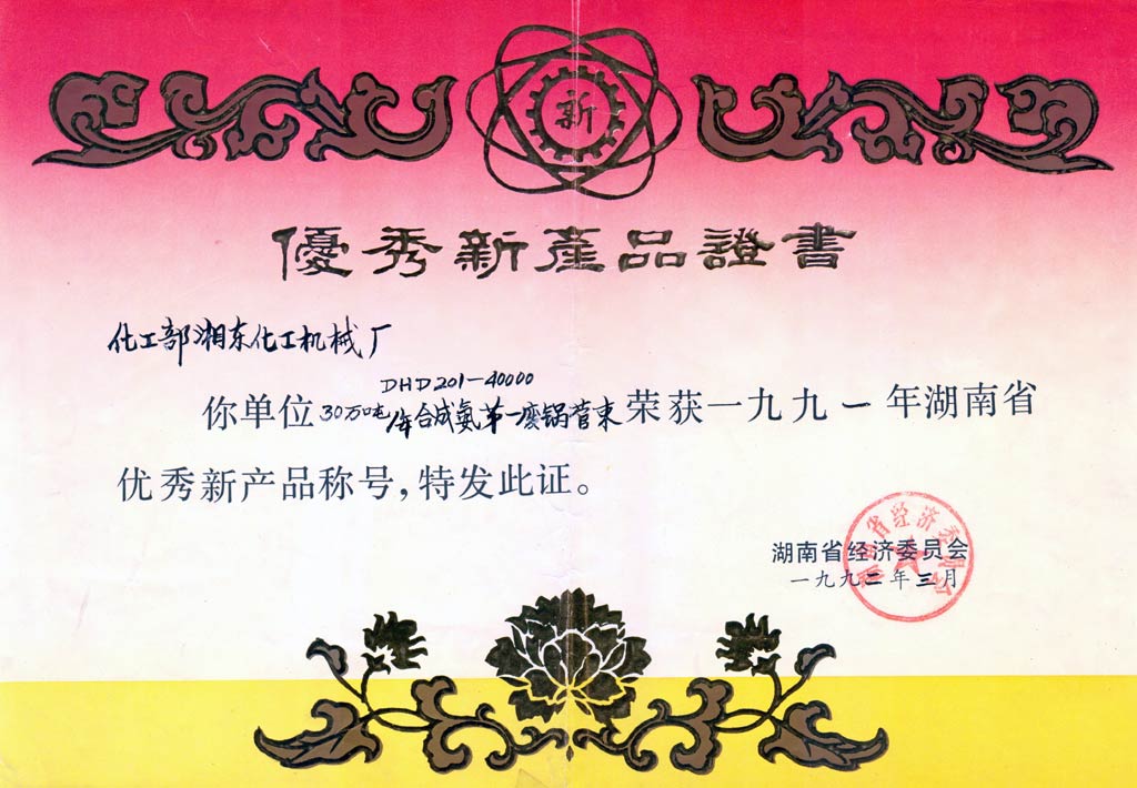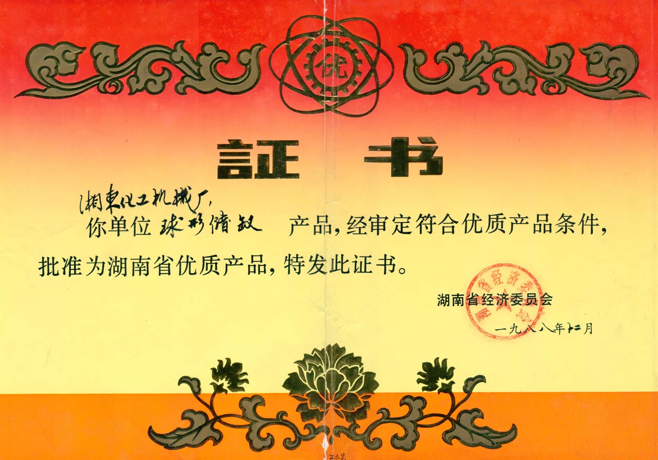 球形貯罐優(yōu)質(zhì)產(chǎn)品證書