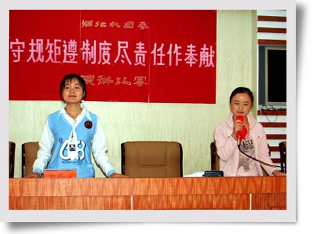 在黨的十七大隆重召開之際,公司團委以獨特的方式向黨獻禮,開展了一系列以“守規(guī)矩,遵制度,盡責(zé)任,作奉獻”為主題的教育實踐活動。通過演講比賽、黑板報競賽與讀書征文等豐富多彩的活動,使踐行社會主義榮辱觀在青年中蔚然成風(fēng)。公司團委通過用社會主義核心價值體系教育青年、用良好的行為準則引導(dǎo)青年、用高尚的品德操守激勵青年,團組織的吸引力、凝聚力、戰(zhàn)斗力明顯增強。為響應(yīng)黨的十七大勝利閉幕,我們?nèi)w團員青年更應(yīng)以崇高的理想信念為核心、以倡導(dǎo)社會文明新風(fēng)為目標、以了解公司各項規(guī)章制度為工作準則、以愛崗敬業(yè)、積極投入生產(chǎn)經(jīng)營為己任,為完成全年生產(chǎn)目標做出應(yīng)有的奉獻。