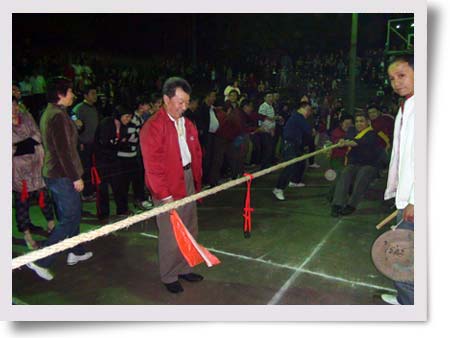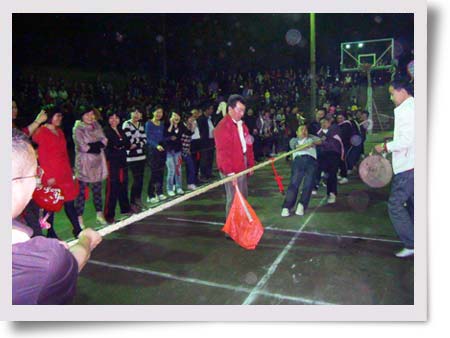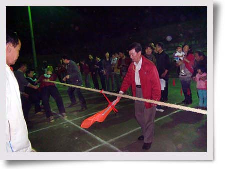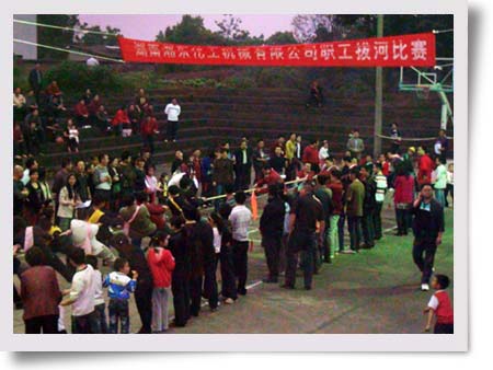 當(dāng)天晚上7點(diǎn),觀眾來到湘東化機(jī)生活區(qū)的燈光藍(lán)球場(chǎng)時(shí),只見黑壓壓一片人群將賽場(chǎng)圍得水泄不通,哇,好熱鬧,“加油、加油、加油。。。。。。”,拉拉隊(duì)的助威聲震天響,整個(gè)比賽氣氛一再被推向高潮。8個(gè)隊(duì)120名職工在比賽場(chǎng)上進(jìn)行激烈的角逐,隊(duì)員們的心就像那根拔河繩凝聚成一根繩,在領(lǐng)隊(duì)的精心組織下,在拉拉隊(duì)的助陣下,勁往一處使。經(jīng)過2個(gè)小時(shí)的初賽和決賽,汽輪機(jī)分會(huì)和機(jī)關(guān)分會(huì)分別奪取了冠、亞軍。