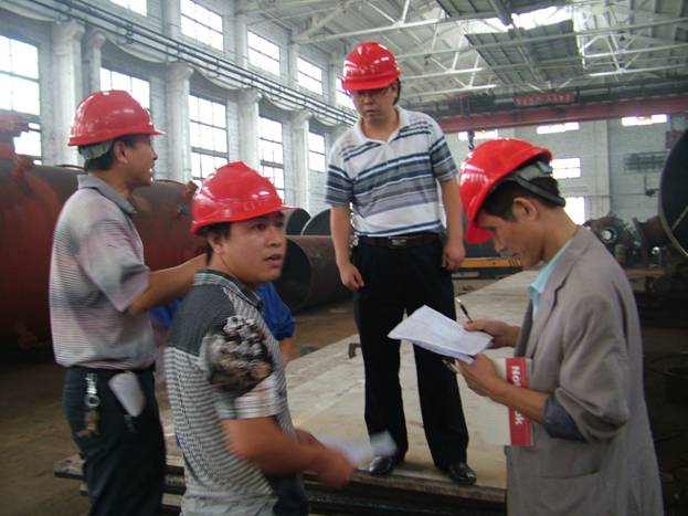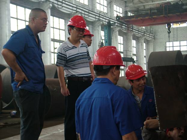為強化對承壓類特種設備制造單位和制造監(jiān)督檢驗機構(gòu)的監(jiān)管,確保特種設備制造質(zhì)量,根據(jù)湖南省質(zhì)量技術(shù)監(jiān)督局《關(guān)于對承壓類特種設備制造單位進行現(xiàn)場安全監(jiān)督檢查的通知》湘質(zhì)監(jiān)函[2012]351號文件,2012年9月26日-27日,湖南省技術(shù)監(jiān)督局黃擁軍、蘇桔平、傅勁清、何鋼一行4人在市、縣質(zhì)量技術(shù)監(jiān)督局有關(guān)人員的陪同下來我公司檢查,檢查組對我公司許可資格、資源條件、質(zhì)量管理、檔案管理、現(xiàn)場管理、產(chǎn)品質(zhì)量等進行了認真檢查,檢查組認為我公司機械加工制造能力較強,對我公司質(zhì)保體系運行情況給予了充分肯定,因公司目前生產(chǎn)分廠在制品較多,對生產(chǎn)現(xiàn)場在制品擺放提出了中肯的建議。