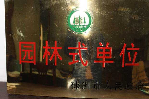 我公司自1971年成立以來,加強園林綠化建設,注重生態(tài)環(huán)境質量,曾榮獲“化工部清潔文明工廠”、“湖南省花園式工廠”榮譽稱號。日前我公司又榮獲株洲市人民政府頒發(fā)的2012年度“園林式單位”牌匾。