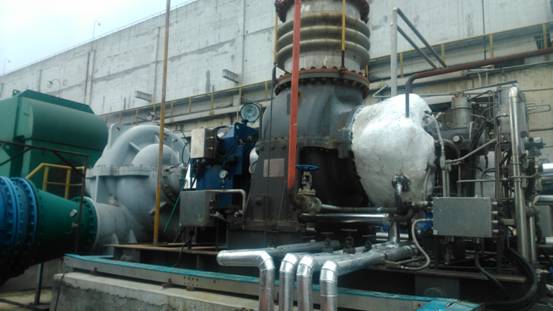 我公司于2013年8月承攬了赤天化集團(tuán)貴州金赤化工有限責(zé)任公司型號為N2.25-0.5/0.012的驅(qū)動循環(huán)水泵用汽輪機(jī)一臺/套的改造項(xiàng)目。該項(xiàng)目是貴州金赤化工的節(jié)能改造項(xiàng)目,計(jì)劃利用甲醇工段富產(chǎn)的40噸左右的壓力為0.5Mpa(g)的飽和蒸汽用冷凝式汽輪機(jī)替換原有循環(huán)水廠6臺單臺功率為2250KW電機(jī)驅(qū)動的循環(huán)水泵的其中兩臺。