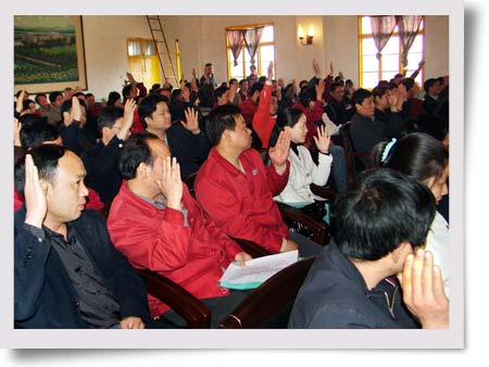 2008年4月16日上午10時(shí),在公司科技樓四樓會(huì)議室,由工會(huì)主席姜衡陽(yáng)同志主持,召開(kāi)了二屆一次職工代表大會(huì),正式代表114人,實(shí)到代表107人,符合法定開(kāi)會(huì)人數(shù)。 與會(huì)代表聽(tīng)取了董事長(zhǎng)兼總經(jīng)理蘇成同志關(guān)于改制工作的說(shuō)明,并就改制工作的五個(gè)方案進(jìn)行了認(rèn)真的審議和表決。對(duì)《企業(yè)改制實(shí)施方案》、《企業(yè)改制后內(nèi)部退養(yǎng)人員生活費(fèi)計(jì)發(fā)辦法及基本社會(huì)保險(xiǎn)繳費(fèi)基數(shù)確定辦法》、《企業(yè)改制職工分流安置方案》和《企業(yè)改制后新公司聘用人員的辦法》的表決,分別以107票一致通過(guò)。對(duì)《企業(yè)改制支付員工補(bǔ)償金辦法》的表決,以103票同意,4票棄權(quán)通過(guò)。圓滿(mǎn)完成了會(huì)議議程。 省石化行管辦副主任方忠,市總工會(huì)基層工作部部長(zhǎng)袁一之等省市領(lǐng)導(dǎo)到會(huì)并講話(huà)。