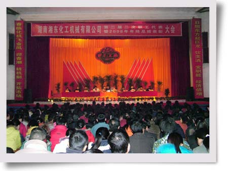 1月6日上午,湖南湘東化工機械有限公司第二屆二次職代會暨2008年度總結(jié)表彰大會在大禮堂召開,會議由黨委副書記、工會主席姜衡陽主持,董事長兼總經(jīng)理蘇成在會上作了題為《務(wù)實創(chuàng)新、精細(xì)管理、形成競爭優(yōu)勢,提升企業(yè)檔次》的工作報告,副總經(jīng)理林德晃宣讀了表彰勞動模范和先進的決定,公司近千名員工到會并認(rèn)真聽取了報告。