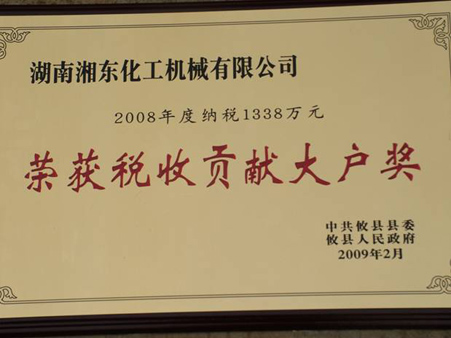 2008年湖南湘東化工機械有限公司實現(xiàn)產(chǎn)值3.5億元,上繳稅收1338萬元,全年投入技改1300萬元,防焊接變形的內(nèi)撐圓工裝等3項獲得國家專利,兩類產(chǎn)品注冊商標被評為湖南省著名商標。(尹雄劍)