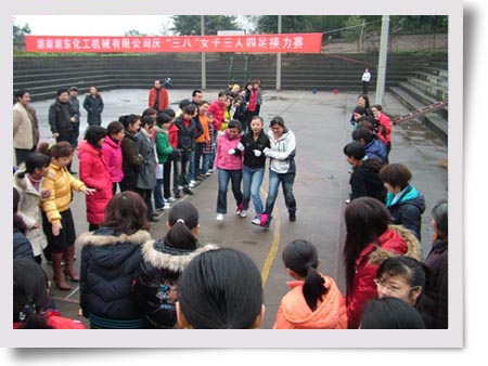 3月7日上午,為慶!叭恕眹H勞動婦女節(jié)99周年,公司女工委員會在燈光球場舉行了女子三人四足接力賽。公司9個分會都派出了參賽隊伍,按照預(yù)先確定好的規(guī)則,每個隊派出6名隊員,來回接力六次,以完成賽程時間長短來確定名次。經(jīng)過激烈的角逐,最后金工分會獲第一名,機關(guān)分會、容器分會獲第二名,汽輪機分會、后勤分會獲第三名。(尹雄劍)