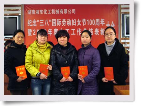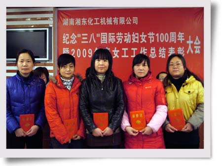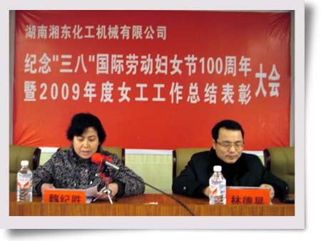 春回大地,萬(wàn)物復(fù)蘇。在這春光明媚的日子里,湖南湘東化工機(jī)械有限公司召開(kāi)2009年度女職工工作總結(jié)大會(huì),隆重紀(jì)念百年“三八”國(guó)際勞動(dòng)?jì)D女節(jié)。