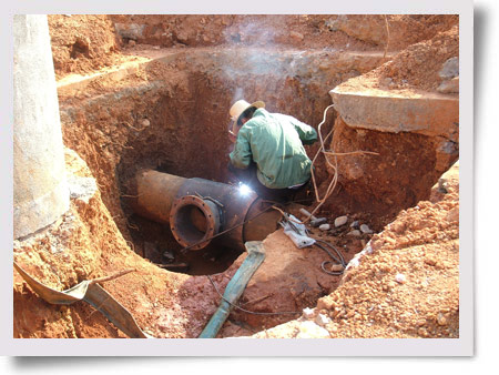 2010年7月5日上午10:30,湖南湘東化工機(jī)械有限公司生產(chǎn)用水管與攸縣自來(lái)水管實(shí)現(xiàn)合攏,這標(biāo)志著該公司結(jié)束了39年的自供水,自來(lái)水供水正式交由地方政府管理。 圖為水管合攏的現(xiàn)場(chǎng)。(王慧卉)