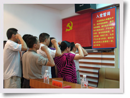 7月1日,“我志愿加入中國(guó)共產(chǎn)黨,擁護(hù)黨的綱領(lǐng),遵守黨的章程,。。。。。。永不叛黨!眮碜5個(gè)支部的10名預(yù)備黨員面向黨旗莊嚴(yán)宣誓,立下對(duì)黨的忠誠(chéng)誓言。 公司黨委負(fù)責(zé)人姜衡陽勉勵(lì)新黨員要在今后的工作生活中,積極做好“三個(gè)表率”,即在堅(jiān)定理想信念上作表率,在踐行黨的宗旨上作表率,在發(fā)揮先鋒作用上作表率。(王慧卉)